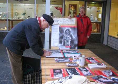 Ein Informationsstand auf dem Wochenmarkt in Ahrensburg. Schwerpunkt waren