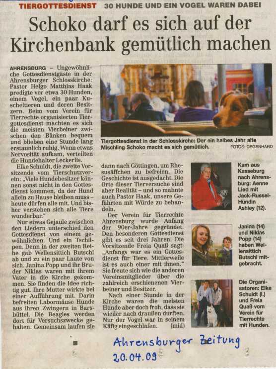 Und auch die Presse berichtete wieder über unseren Tiergottesdienst: